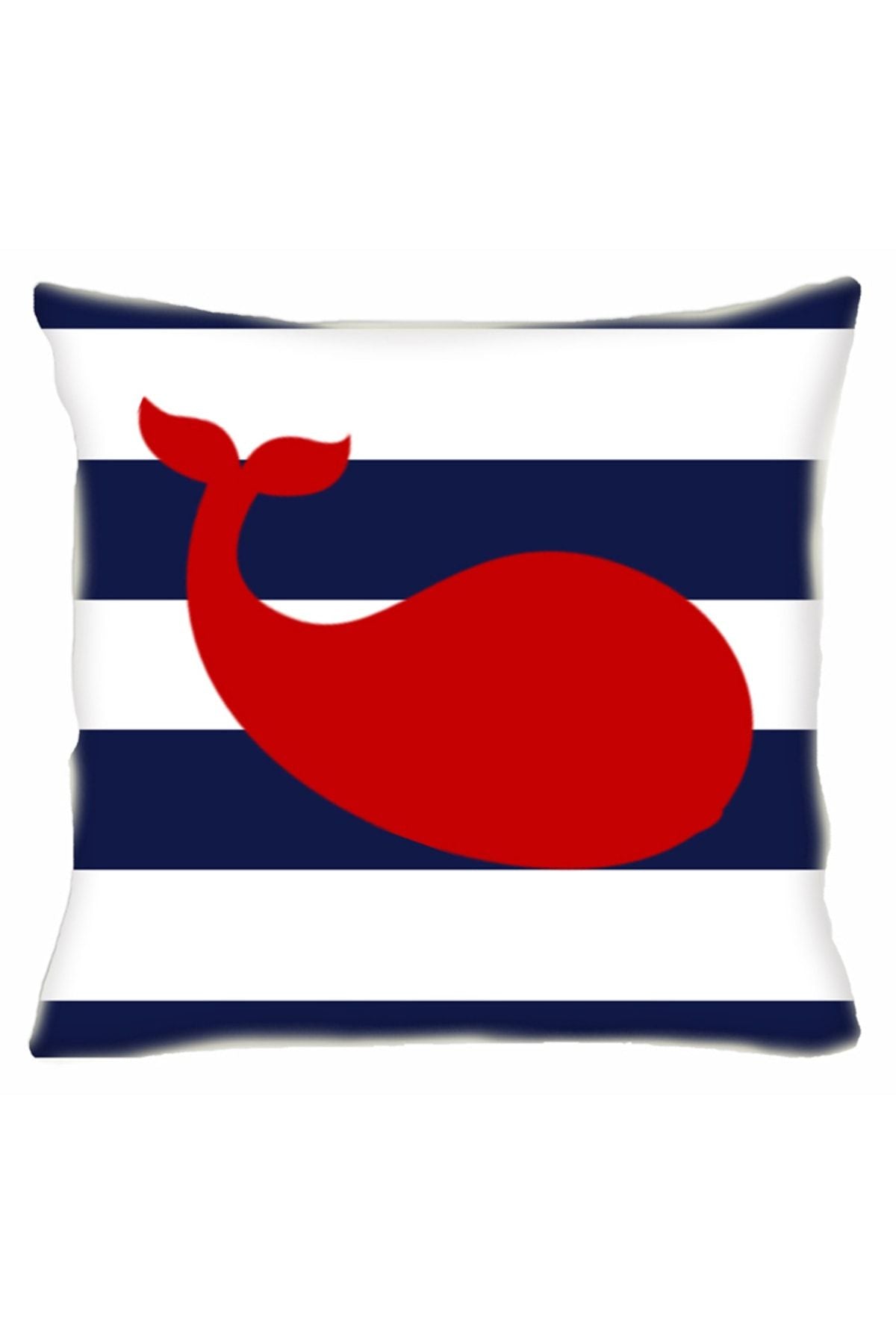 Lacivert Kırmızı Beyaz Çizgili Balina Model Yastık & Kırlent & Kırlent Kılıfı No:3