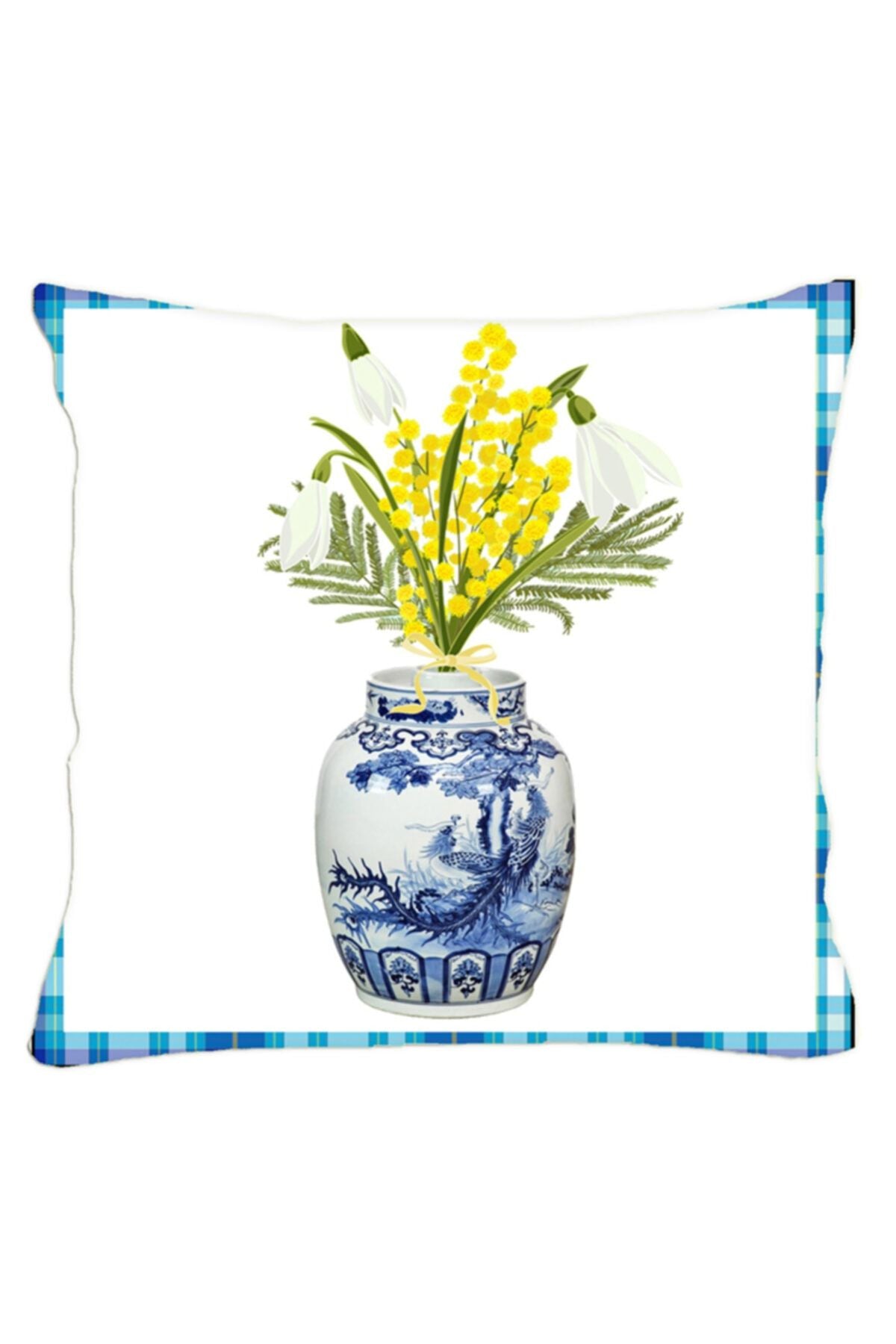 Limon Serisi Bahar Mavi Bleu Vazo Yastık & Kırlent & Kırlent Kılıfı No: 1