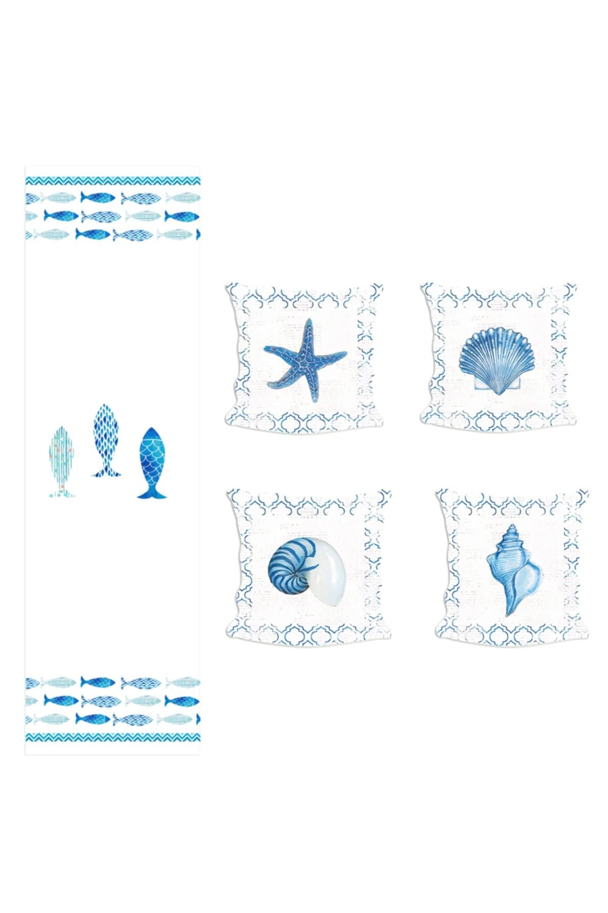 Linen Marine 4lü Kırlent Kılıfı Ve Runner Seti No:16SETNO016