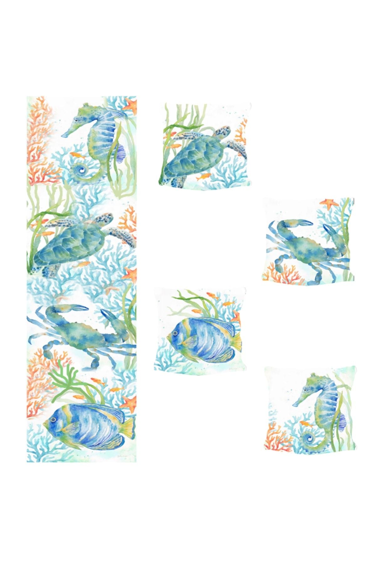 Marin Deniz Desen Model : 4 4lü Kırlent Kılıfı Ve Runner Seti No:296