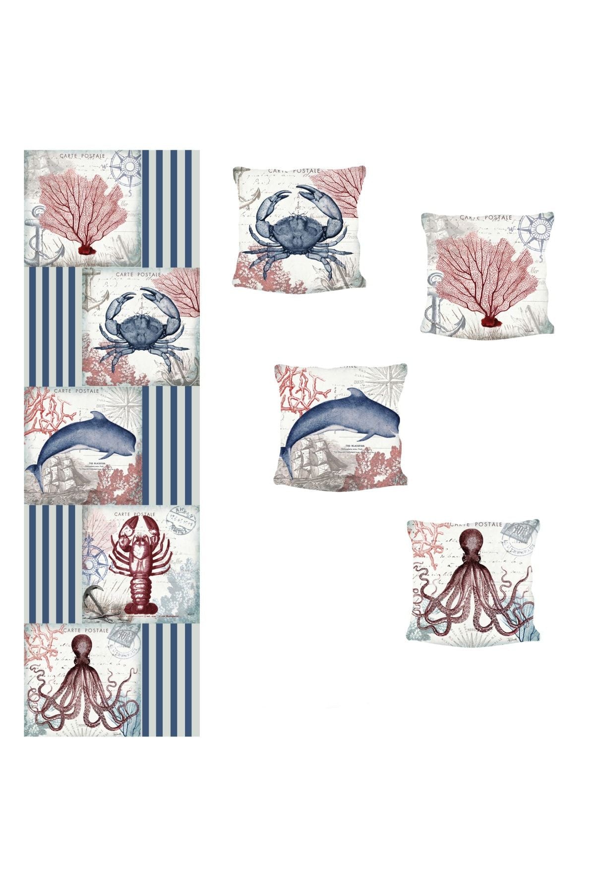 Marin Deniz Desen Model : 5 4lü Kırlent Kılıfı Ve Runner Seti No:297