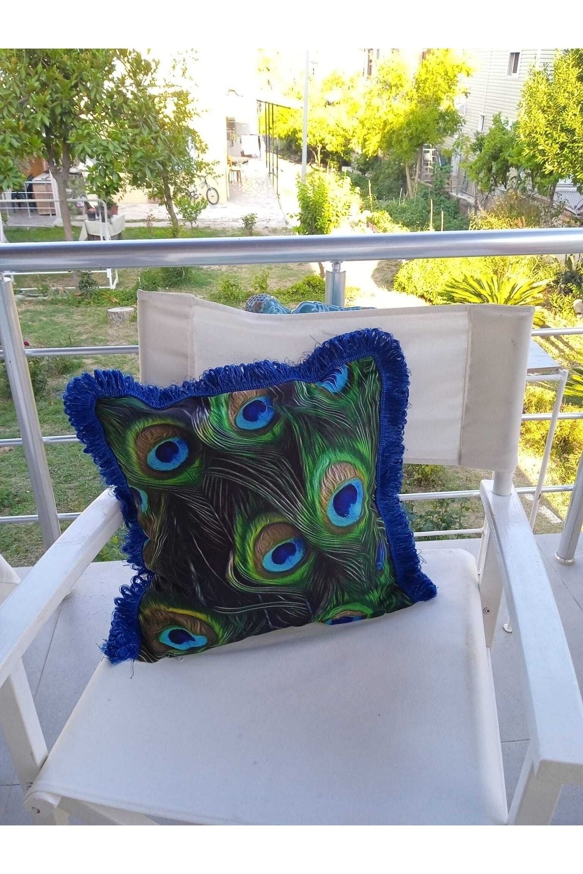 Mavi Püskül Tavus Kuşu Kırlent & Kırlent Kılıfı Doğa Seti No:2