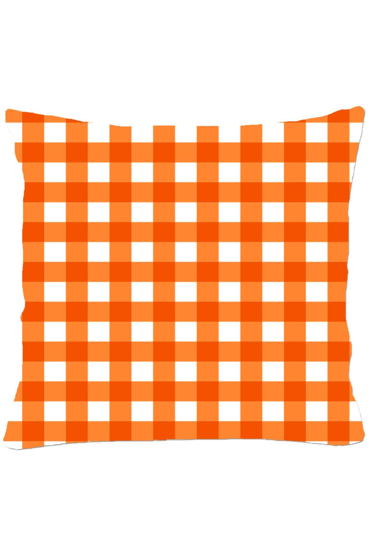 Pötikare Damalı Ekose Turuncu Beyaz Kırlent Kılıfı