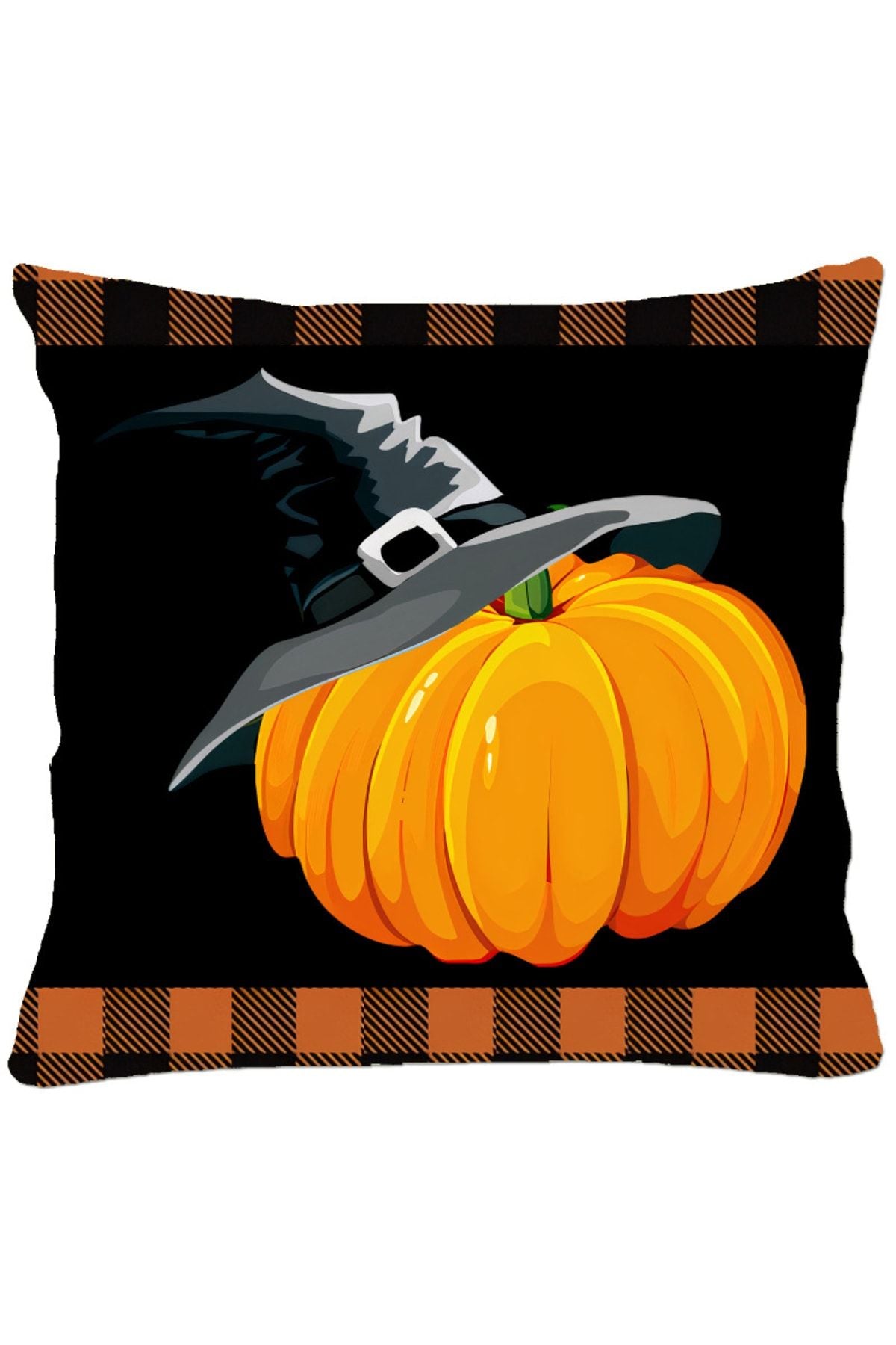 Halloween Şapkalı Balkabağı Ekose Zemin Kırlent Kılıfı