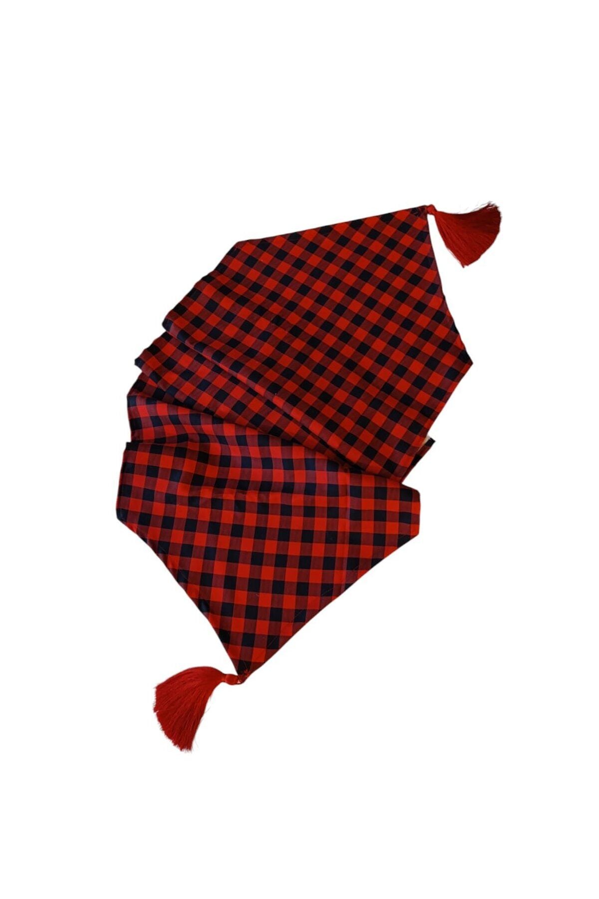 Kırmızı Siyah Pötikare, Dama, Buffalo Desen Üçgen Püsküllü Ranır - Runner