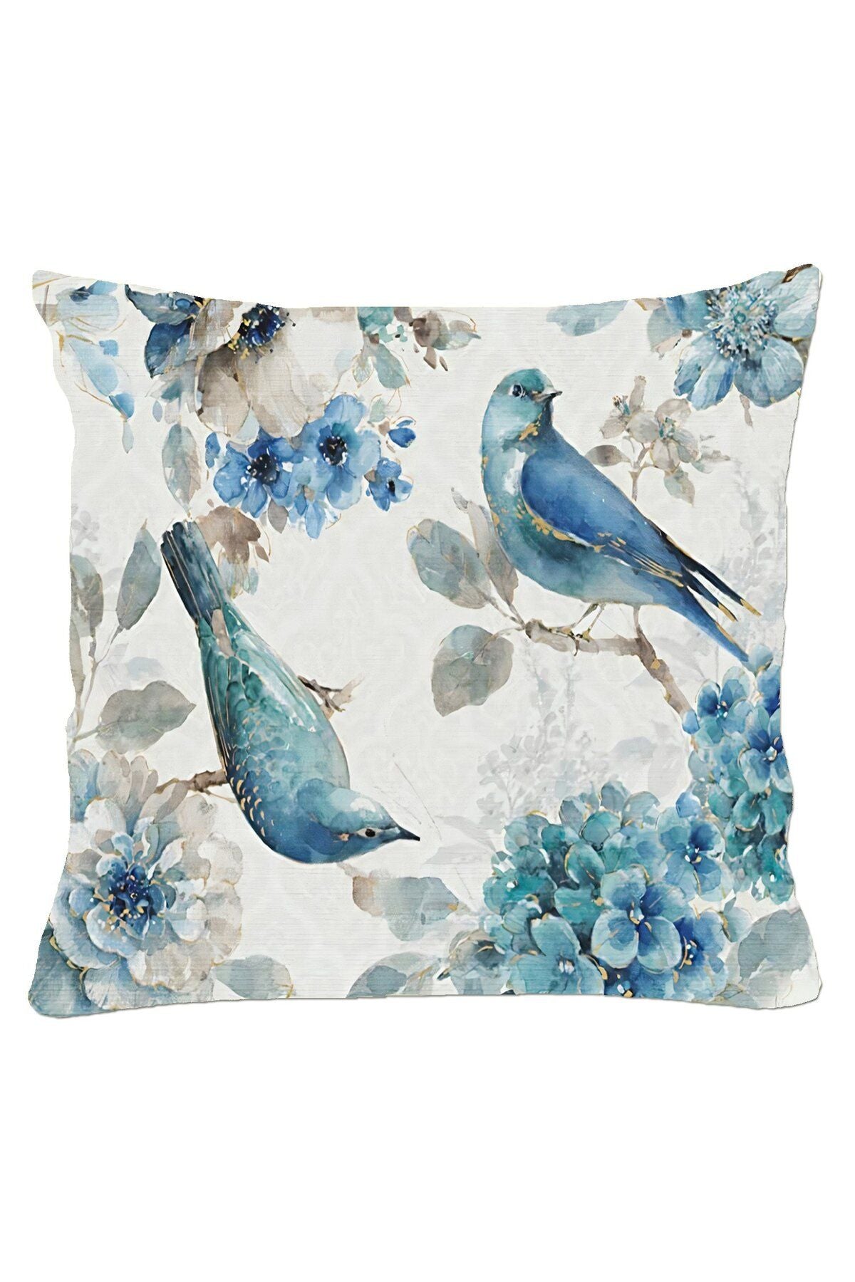 Kuşlar Lacivert Krem Kırlent Kılıfı Design 2