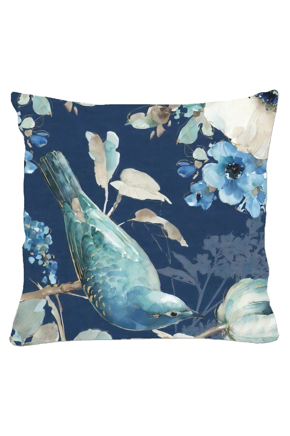 Kuşlar Lacivert Krem Kırlent Kılıfı Design 3